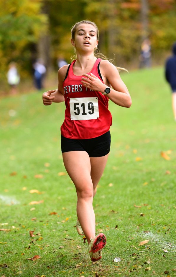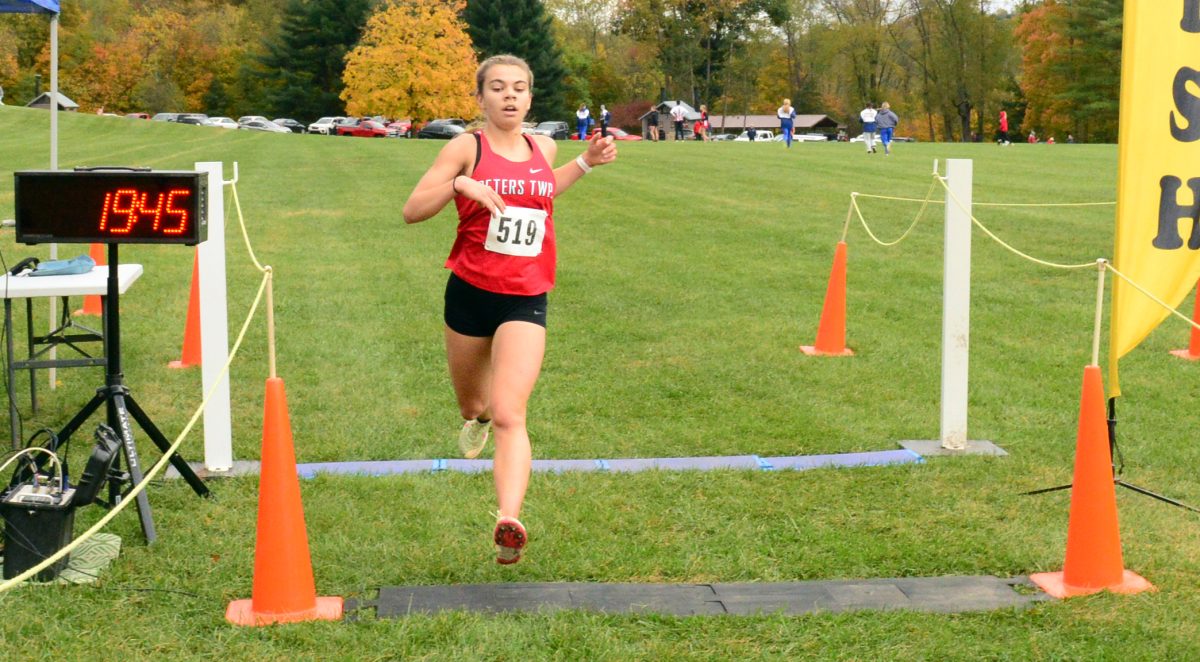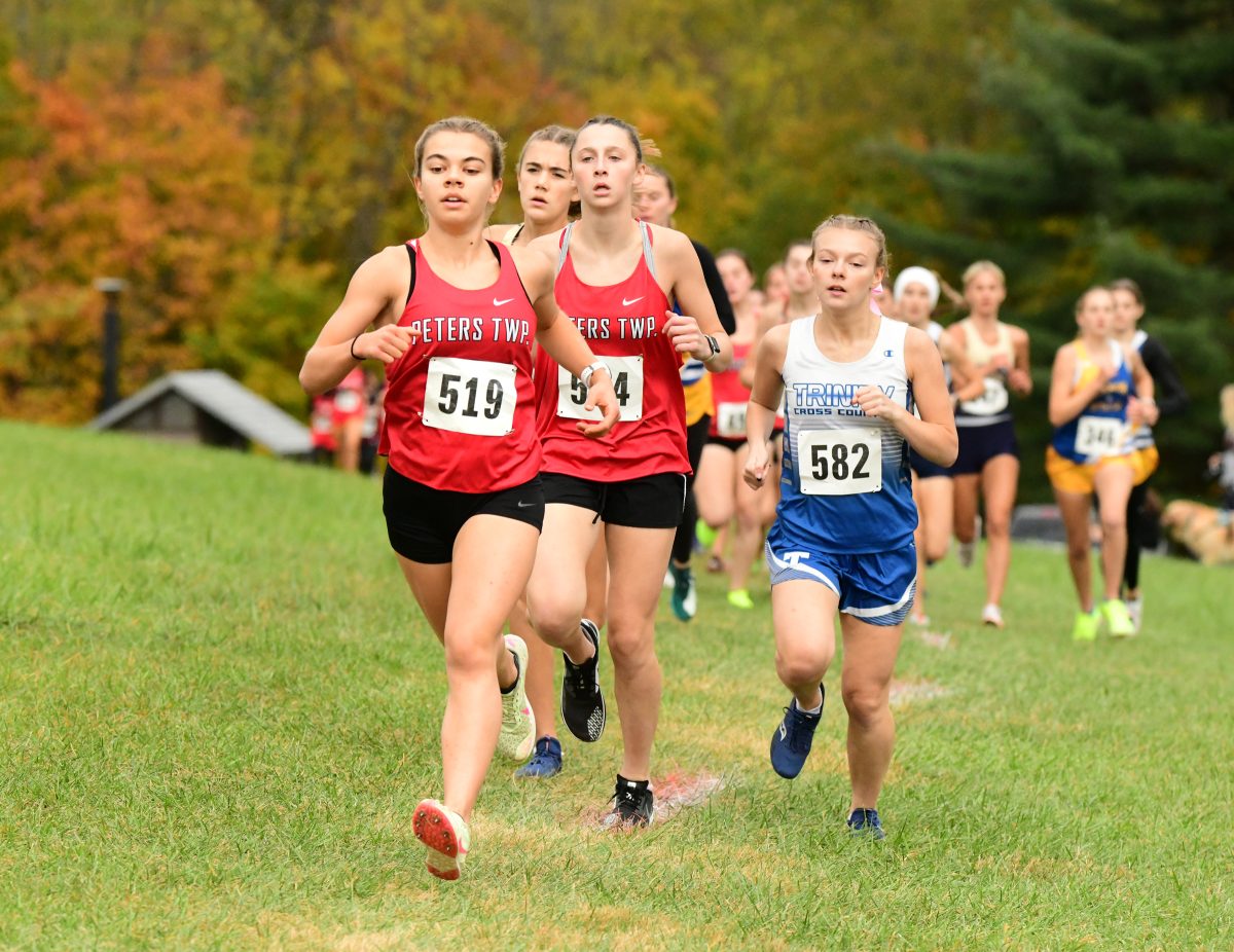 Peters Township senior Meagan McKenna followed the race plan of her male counterpart in jumping out to an early lead and cruising to the finish line in a time of 19:44.92 to finish in first place. Teammates Reagan Fisher (20:24.68) and Grace Senneway (20:38.69) came in second and third.