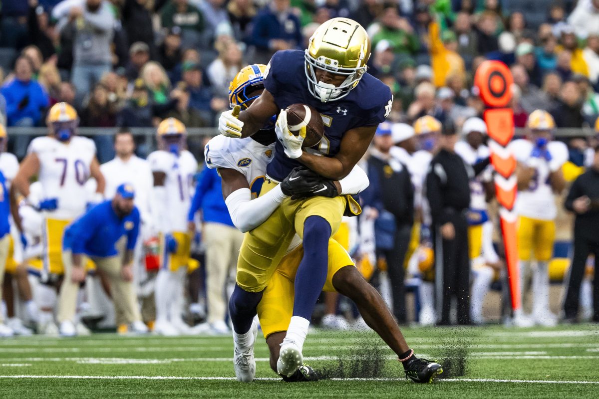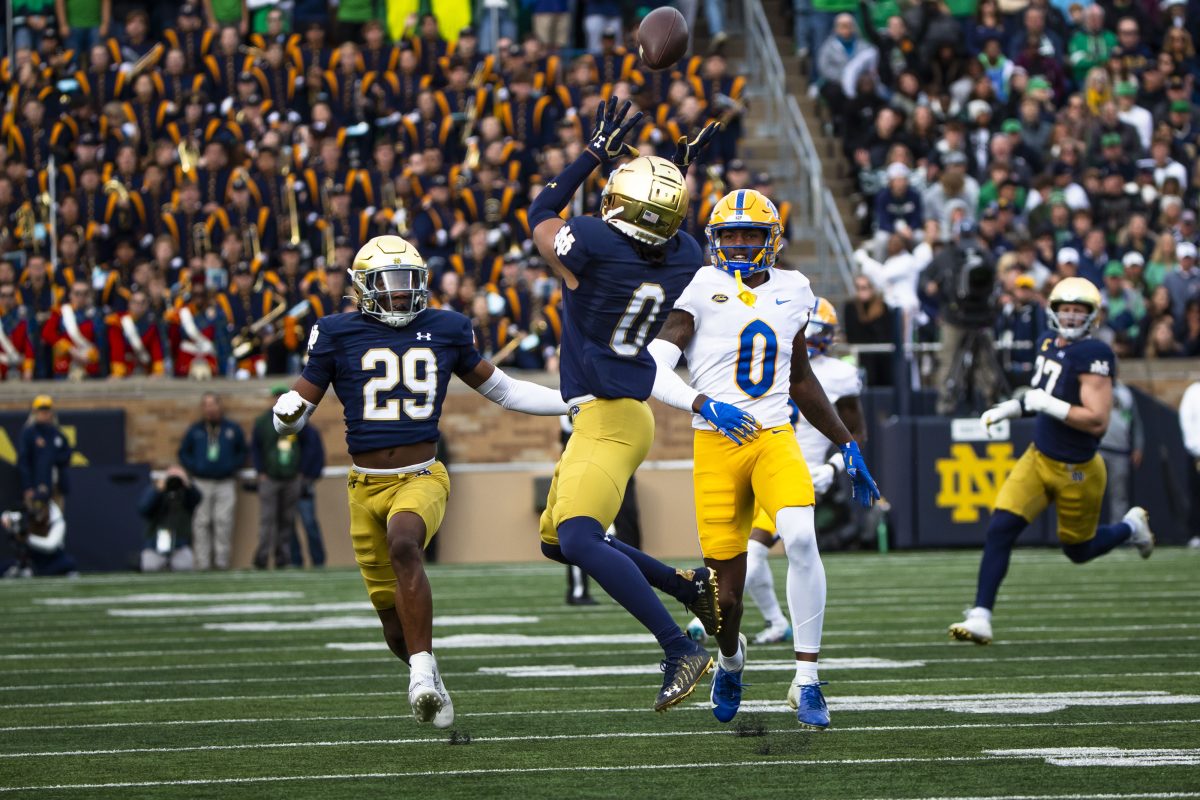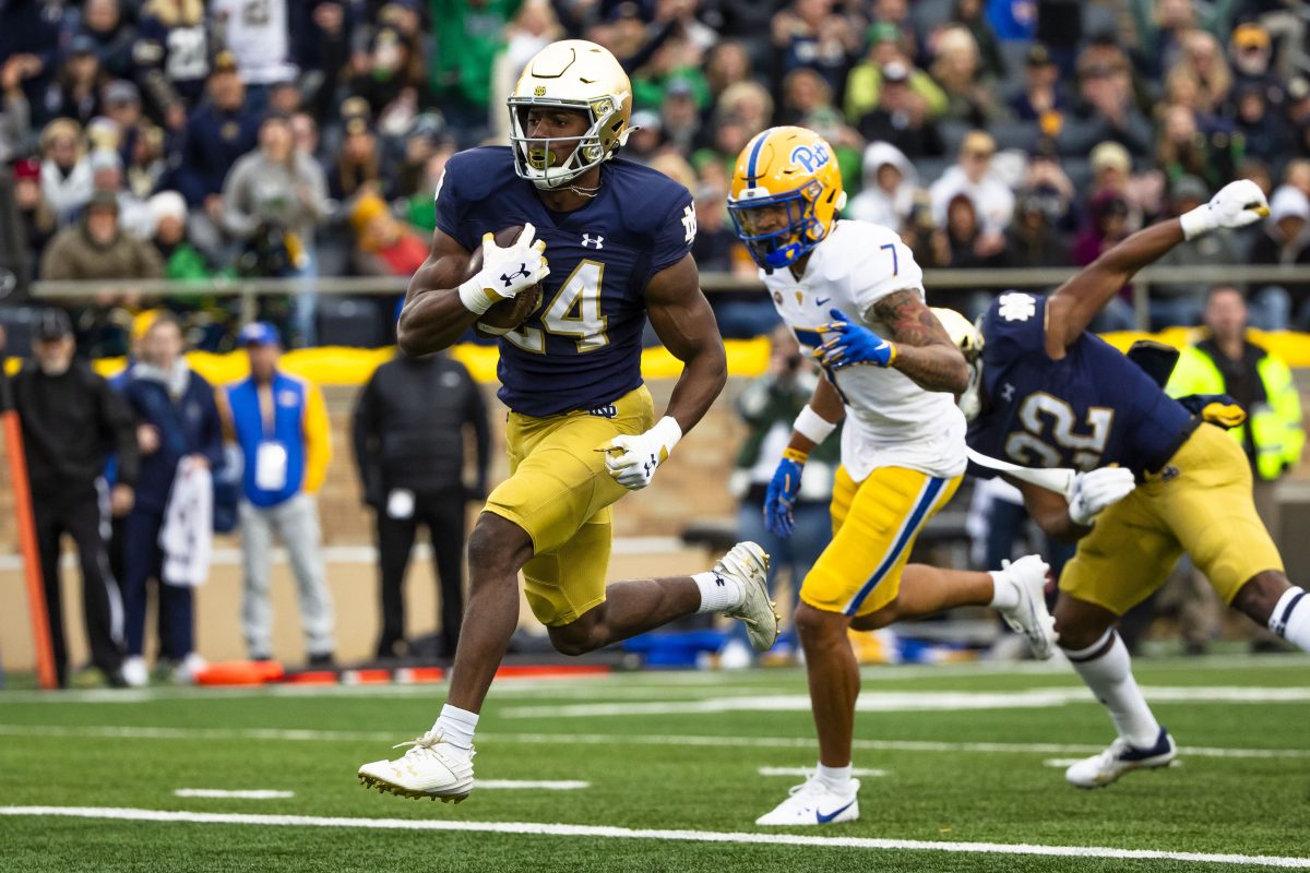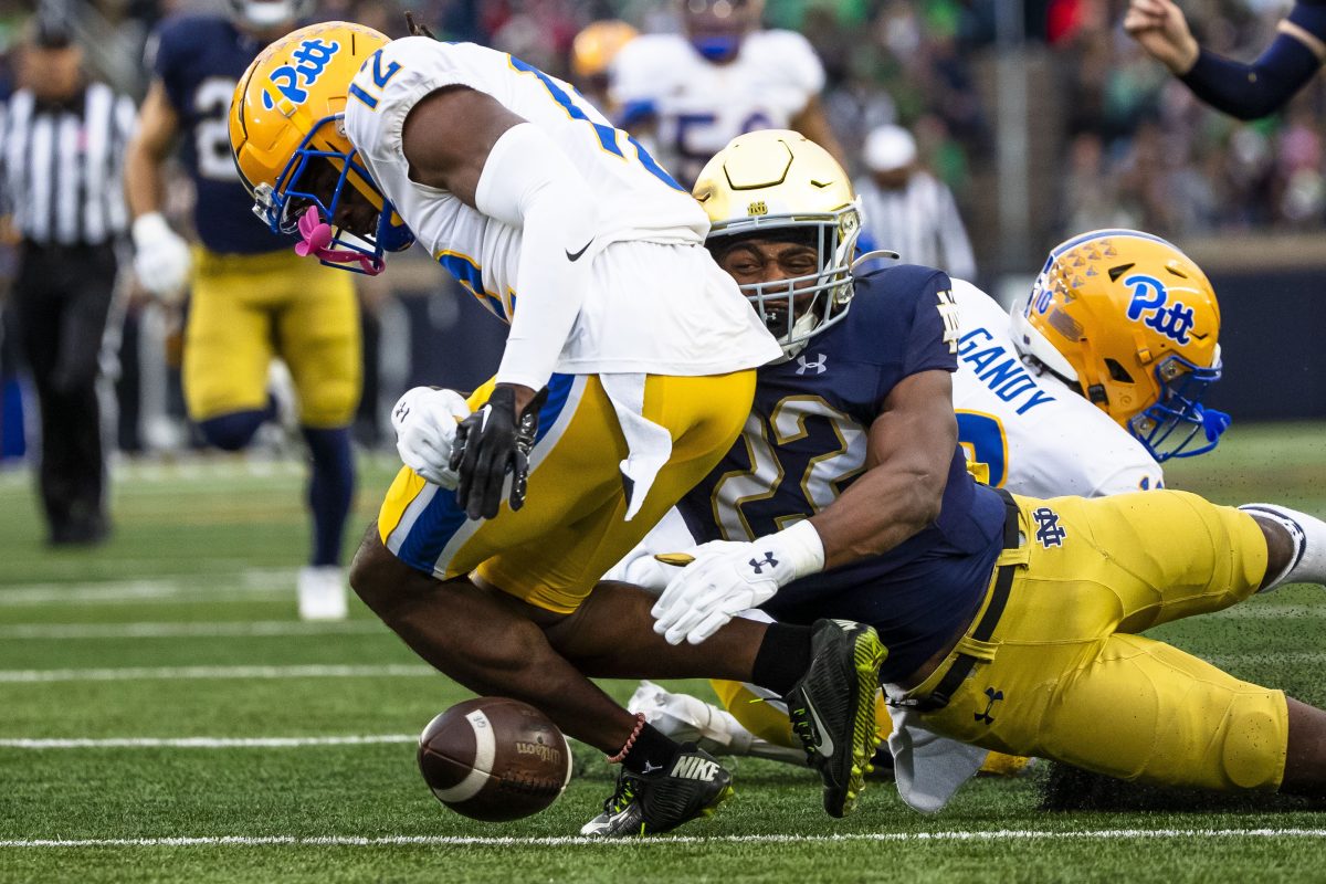 Sam Hartman threw interceptions on Notre Dame’s first two possessions, but Pitt couldn’t take advantage either time. After the Panthers’ first pick, they went three-and-out, and Chris Tyree returned the punt 82 yards for a touchdown to put Notre Dame on the board.