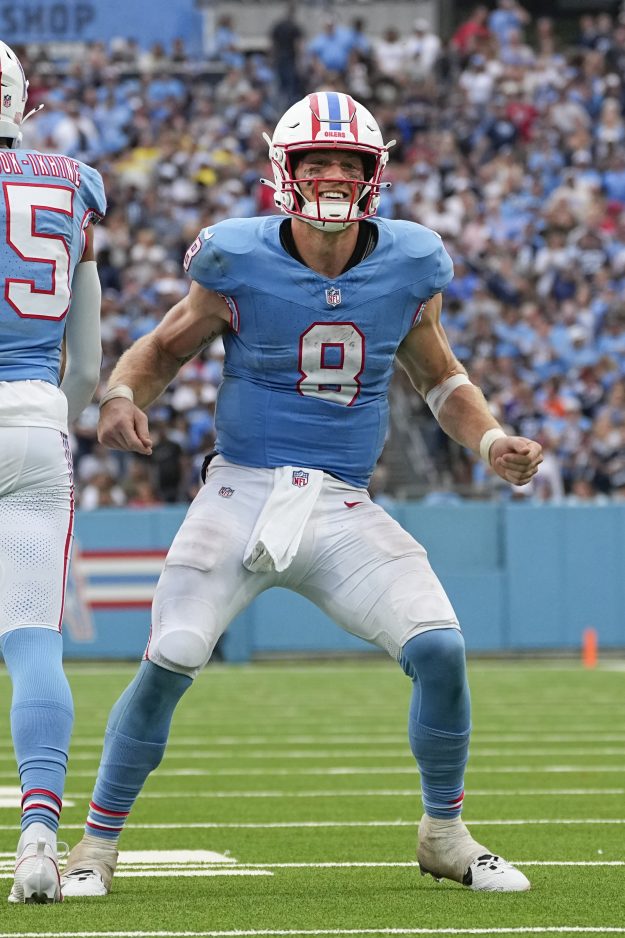 The offense came in with three combined TD passes — one by Derrick Henry — and scored its most points since the 2021 season finale. Levis not only threw for 238 yards and did not turn the ball over, he posted a 130.5 passer rating. He doubled the number of TD passes Tannehill had in his first six starts.