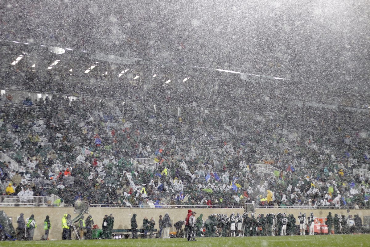 It wasn’t until 2014 that there was another night game after daylight savings: Ohio State at Michigan State and Michigan State at Maryland. It was 39 degrees with an 8-mph northwest wind for that first game in East Lansing, Michigan. It was 32 with no wind for the game in College Park, Maryland.
