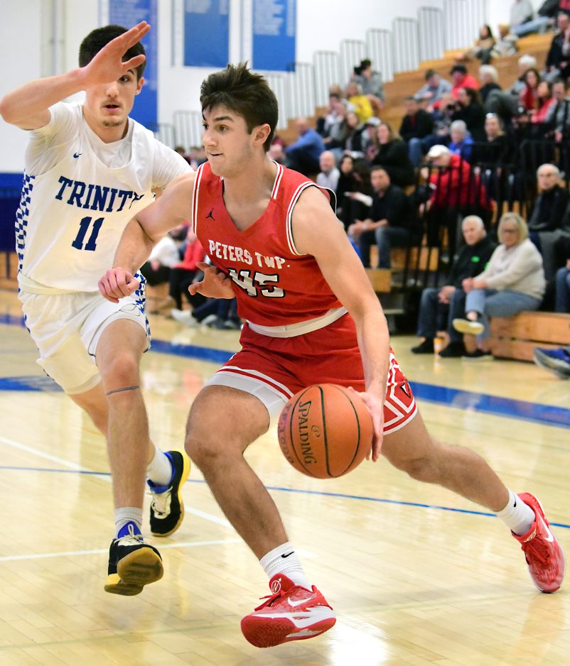 Peters Township (3-1, 9-4) was led by Jack Dunbar who scored 24 points. Cameron MIlls and Dylan Donovan chipped in with 16 points apiece while Sean Thelk added 12, all on three pointers.