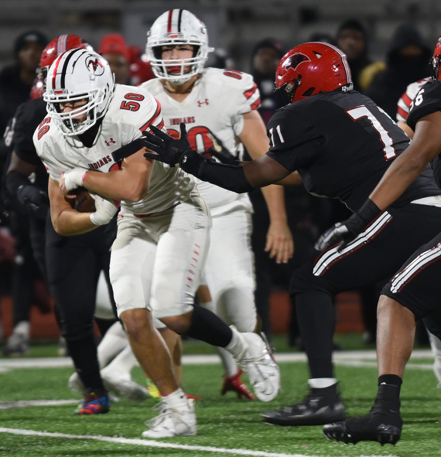 The Indians went three-and-out on their first drive, but senior defensive lineman Dante Recker stopped Imhotep’s second drive with an interception after a pass was tipped at the line.