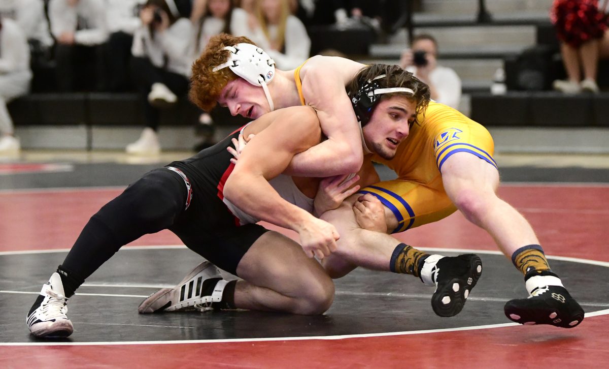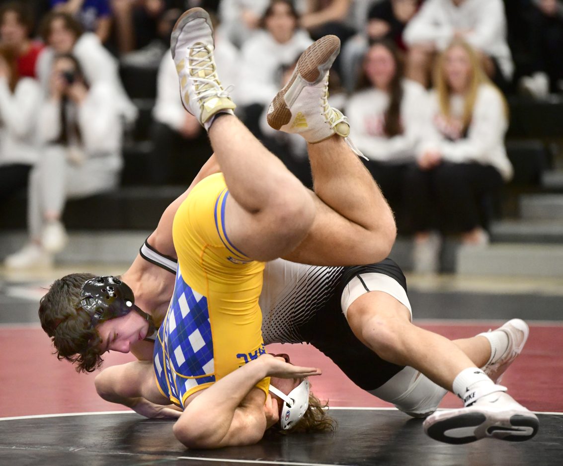 Daniel Huffman (152) and Brock Evans (160) earned back-to-back falls for the home team, who had a 23-12 lead with seven bouts remaining.