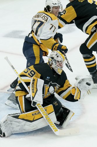 PITTSBURGH — Sidney Crosby scored his 42nd goal and added an assist as the Pittsburgh Penguins preserved their playoff hopes with a 4-2 win over the Nashville Predators on Monday night.