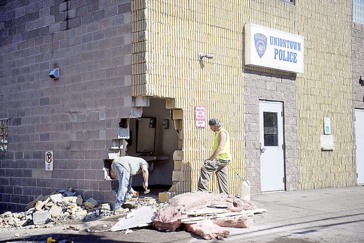 An Advanced Disposal garbage truck careened into the Uniontown City Police station Monday morning, totaling a police car, damaging a second police car and tearing down wires and barricades.“It shook the building,” said Uniontown City Police Capt. David Rutter.No injuries were reported. He ...