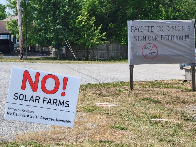 A solar farm that would be constructed on an 88-acre property in Georges Township has sparked backlash from people living nearby the site who say it would have an adverse affect on their neighborhood.