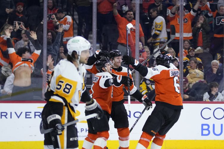 PHILADELPHIA — Sean Couturier scored 3:55 into overtime to lead the Philadelphia Flyers to a 2-1 victory over the Pittsburgh Penguins on Monday night. Tyson Foerster scored in regulation for Philadelphia. Sidney Crosby became Pittsburgh's all-time leading ...