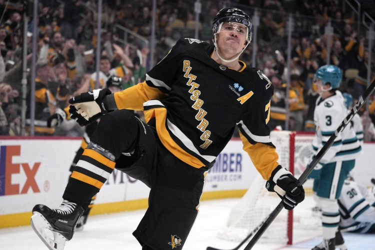 PITTSBURGH — John Ludvig and Rickard Rakell scored two minutes apart in the third period and the Pittsburgh Penguins pulled away from the San Jose Sharks for a 6-3 win on Thursday night.