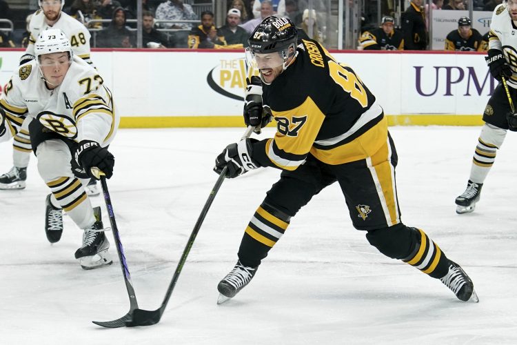 PITTSBURGH — Brad Marchand scored short-handed to cap Boston’s four-goal second period, and the Bruins beat the Pittsburgh Penguins 6-4 on Saturday night.