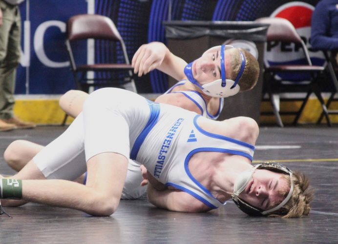 HERSHEY – Trinity’s rematch with Connellsville didn’t go according to plan, as the Falcons didn’t give up a fall while securing three of their own in a 30-26 victory Saturday morning in the third round of consolations in the PIAA Class 3A team tournament at the Giant Center.