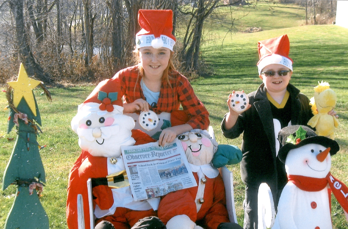 Meadow, 11, and Max, 8, Cushey of Finleyville are getting in the Christmas spirit with their great-great-uncle and aunt's Mr. and Mrs. Claus and sleigh.