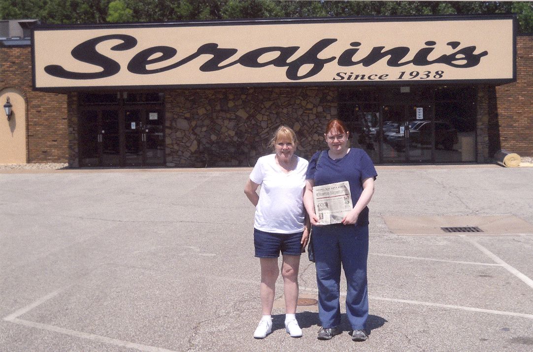 Patty Wald and Kate Stewart of Washington had lunch at their favorite restaurant during their vacation in Erie. Taking the photo is Patty's husband Ray.