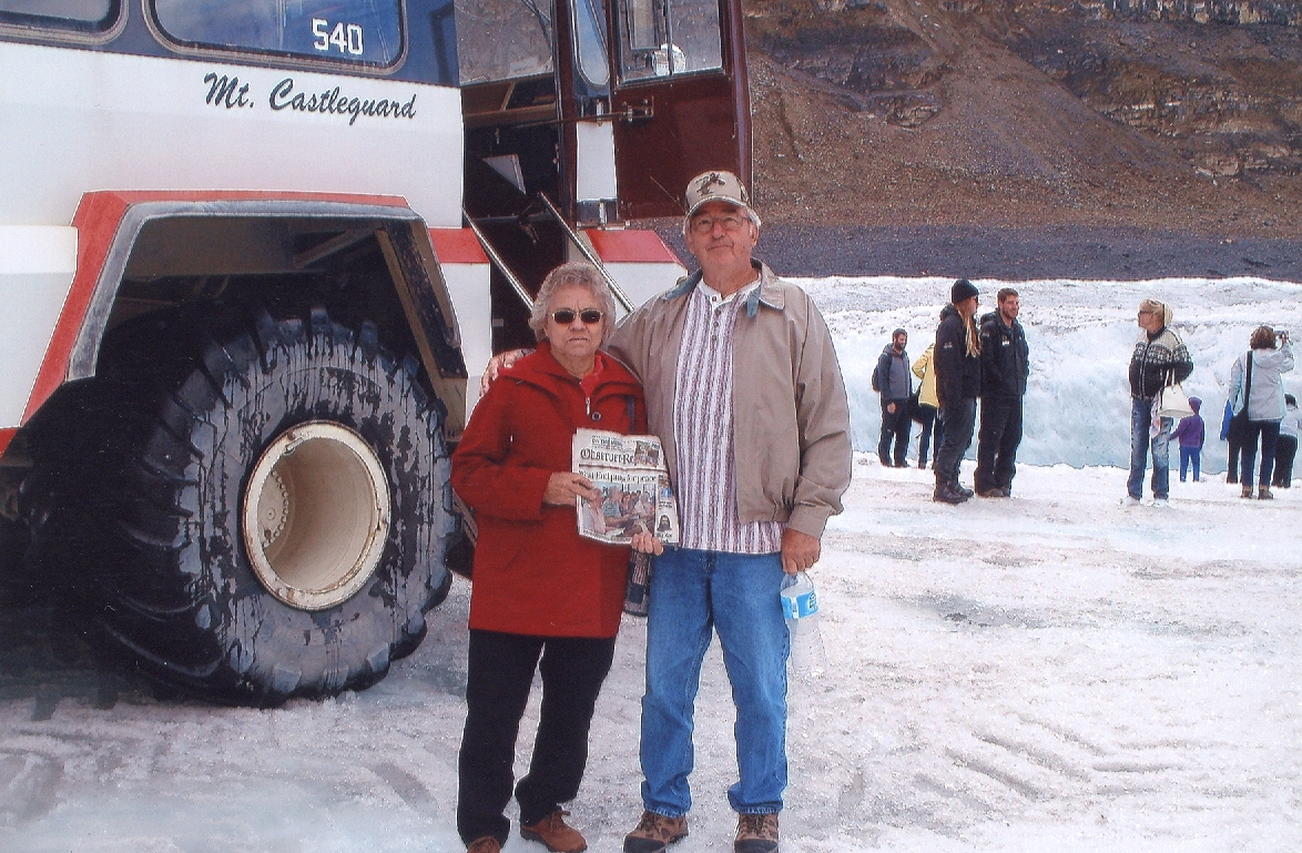 Stush and Madolyn Horency of Washington took a trip by train in August for their 45th wedding anniversary through the Canadian Rockies. They are pictured on a glacier at Columbia Icefield.