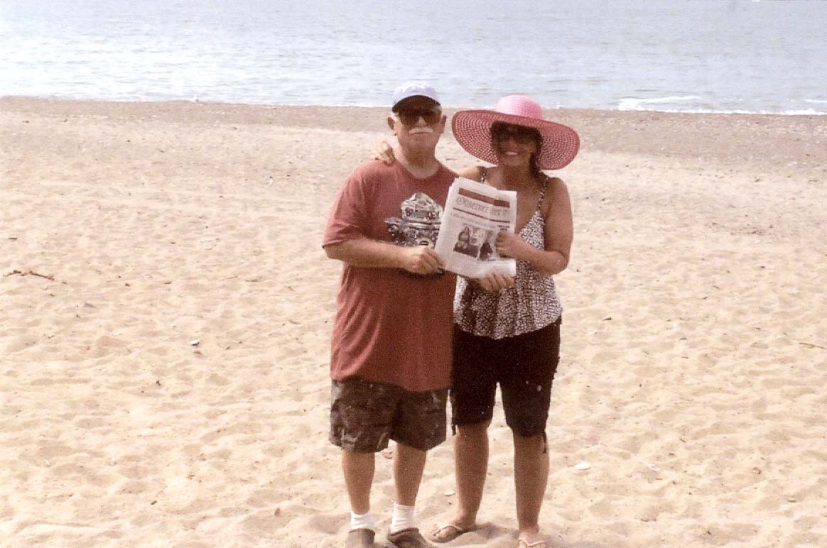 Karen Sirianni and Tony Battistone of Bentleyville took the O-R along while vacationing at Presque Isle, Erie.