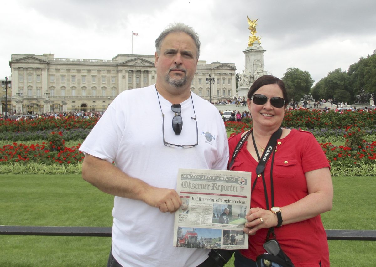 Kerry and Joe Pigeon of Scenery Hill took the O-R along while visiting Buckingham Palace in London, England, to celebrate their wedding anniversary.