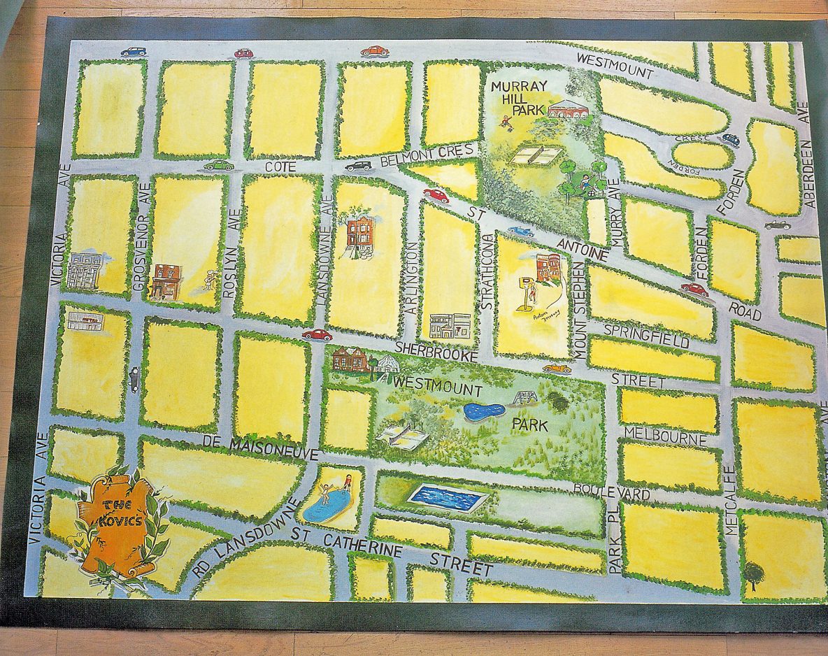 Shown here is a mat that I designed for a child’s playroom in 2000. It is just as fresh and fun today, and sits ready for lots more imaginary walks. The neighborhood around a child’s home is the first “big world” that they know. I made a freehand map of the area and painted on details and landmarks that were most familiar. It’s not necessary to draw everything to scale. There’s a park, a library, a grocery store or post office, some street signs, and anything else that makes the neighborhood unique. My base color is yellow, roads are painted gray, grass is green, and I used a small sponge dipped into green paint to mark off trees and bushes. Draw in the child’s house, of course, using colors that match. This scene became the focus of many hours of play.
