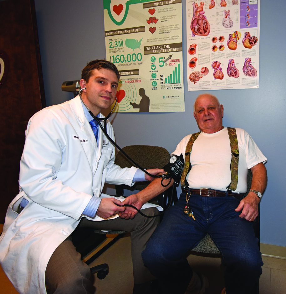Dr. Benjamin Susco checking the blood pressure of his patient Barnie Slay at the Washington Outpatient Cardiac Diagnostic Center in Washington.