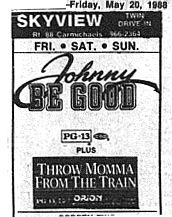 Going back just 20 years to 1988, Skyview Drive-In in Carmichaels, Greene County, had a double feature of two PG-13 movies, “Johnny Be-Good” and “Throw Momma from the Train.”