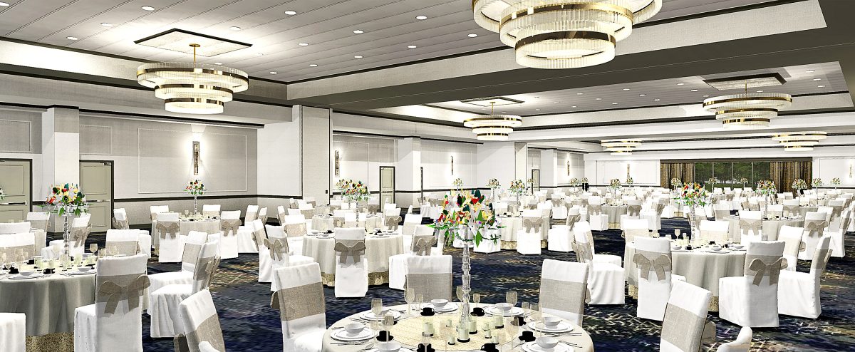 What you’ll get: Use of the newly-renovated ballroom; five hours of open bar, hors d’oeuvres, dinner, Champagne toast, linens, chair covers, menu cards, cake-cutting service, private cocktail reception for bridal party, candles, accommodations for bride and groom